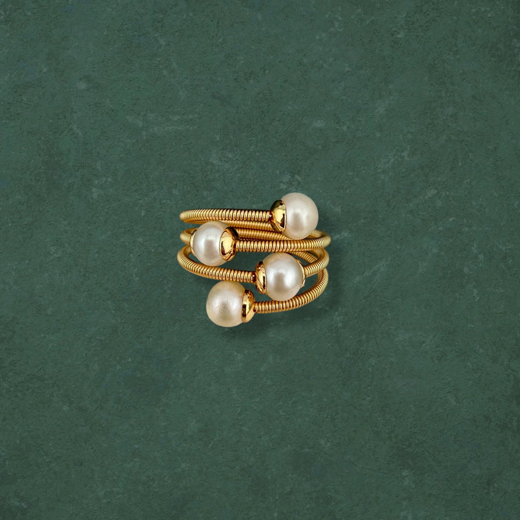 Multi-Pearl Adjustable Coiled Ring